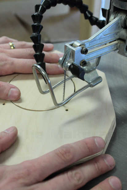 Trazar, medir, o descargar su patrón de agujeros del altavoz y marca en sus frentes. Estos se colocan fuera del centro para evitar resonancias internas (más parecen un poco huevos fritos así.)