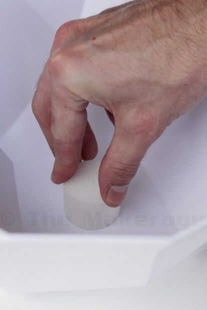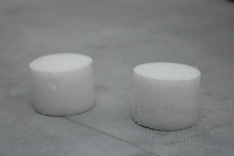 Para hacer la abertura trasera del terminal, utilice dos cilindros de espuma de artesanía. Cortar cada una para que la pelota se sienta encima de él a la altura correcta en el molde exterior. Para más volumen, ajustar la bola inferior en el molde haciendo la espuma más corta y agregar extra arena en la bola. No hagas las paredes demasiado finas. Menos volumen, hacer la espuma taller y poner menos arena en la bola.