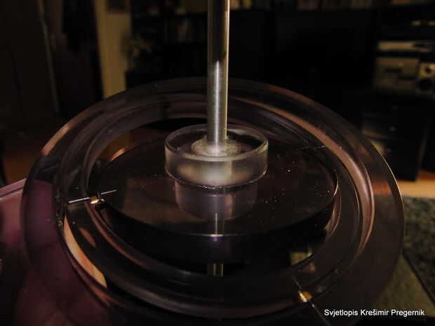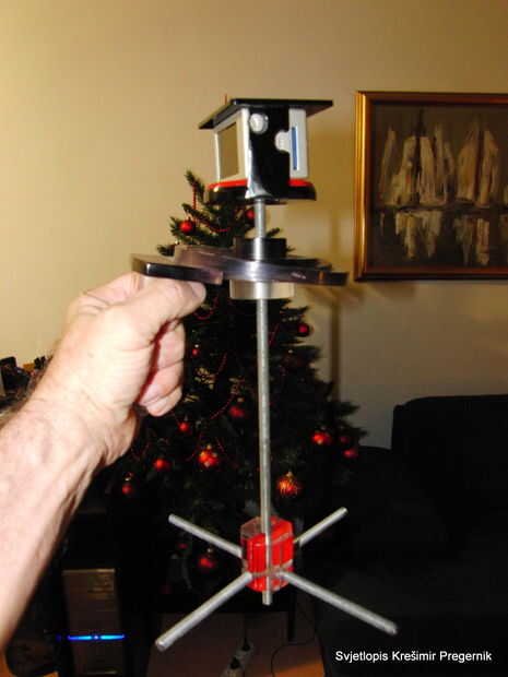 Intentando encontrar la mejor forma de contrapeso, experimentar con diferentes formas de esta barras de tornillo de 8mm. En cada extremo un peso adicional puede ser añadido y probado. En el extremo inserto un pequeño rodamiento (de rodillos) en la placa media para conseguir el giro más suave, diámetro es 15 eje 6mm de espesor 5 mm y pegado con dos anillos de pequeño plexi. Que buen panorama.