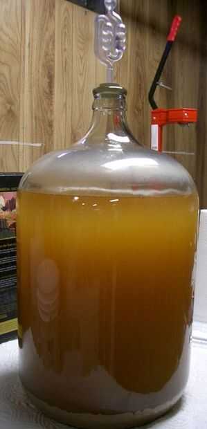 7. Coloque el tapón en la parte superior de la botella. Agregar el bloqueo de la fermentación. En dos días o así, debería ver la levadura en el proceso los azúcares en alcohol. Cuando se ha detenido la fermentación activa (4-6 semanas), la botella y disfrutar.