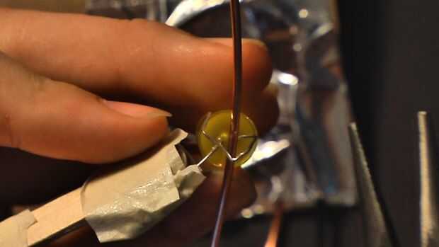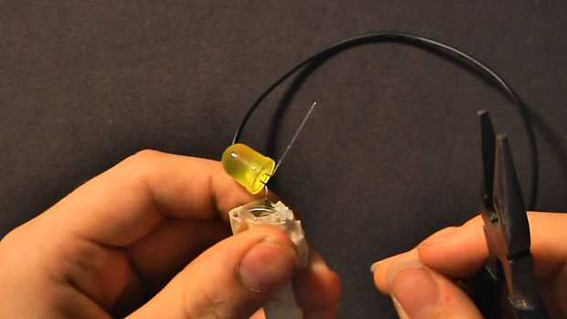 Doblar el otro cable del LED del palillo de arte. Asegúrese de que ninguna de ellas toca la batería. Utilice los alicates para envolver el cable de LED alrededor del alambre de cobre desnudo para crear un bucle.