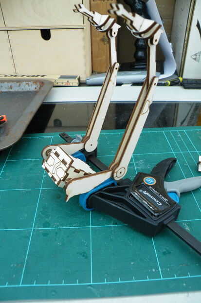 Es más fácil añadir las piernas una a la vez, el tiempo de sujeción se secan.