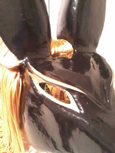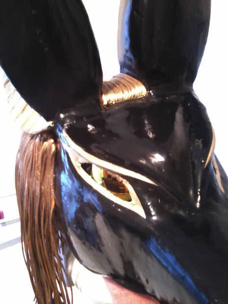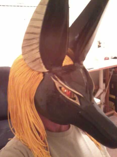 Los ojos son de un par de gafas de sol reflectantes oro pegado en el interior de la máscara. Una vez en posición, utilizar una herramienta moto hacerse cuidadosamente con el iris (y así se puede ver mejor.)
