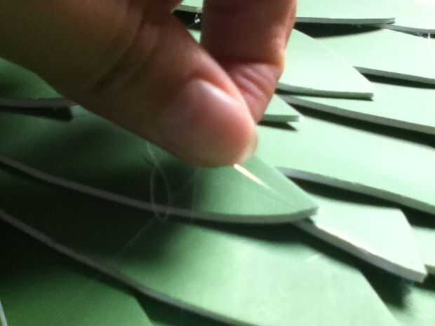 Cuando haya terminado de pegar escamas a la capa base, quite todos los wisps pegamento dejado atrás desde el proceso de encolado. Usando el mismo color principal de la pintura acrílica, pintar los bordes de todas las escalas y permitir que la armadura de la escala que se seque.