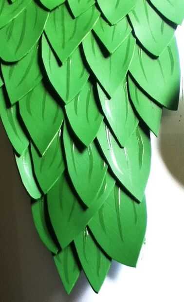 Con un color más oscuro de la pintura acrílica, emplear la técnica de "Infiltrada". "Utilizar [a] pincel largo y fino para pintar las venas" (Huber, 2006, pág. 140). Pintura en las venas a cada escala individual. Comienzan las venas pintando entre las escalas capas y continuar el camino hacia abajo en cada escala hacia las puntas de 3/4, 3 venas por escala serán suficiente. Permita que la pintura se seque.