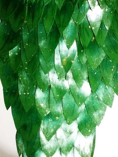 El efecto final en el juego para crear una escala armadura hecha de espuma de EVA es la técnica de "Moteado". Como su nombre indica, este paso será necesario aplicar manchas de color a la armadura de espuma. Esto se logra mediante el uso de una brocha grande o pequeño, un pulgar y un encendedor color metálico pintura de acrílico. En un recipiente, añadir agua el encendedor metálica pintura acrílica hasta que la consistencia de sopa cremosa. El agua permitirá volar las cerdas del cepillo más fácil y con un rociado más amplia de la pintura. El efecto "Moteado" es creado por sumergir el pincel en la pintura metalizada suavizada y ejecutando un pulgar sobre el borde de las cerdas en forma similar a la puesta de un encendedor de cigarrillos. Práctica moteado papel banner para ver los efectos que crean diferentes distancias y ángulos de sujetar el pincel. Una vez se elige un método particular de moteado, mantener cepillo sumergido en pintura por encima de la armadura y el efecto "Moteado". Deje que se seque.