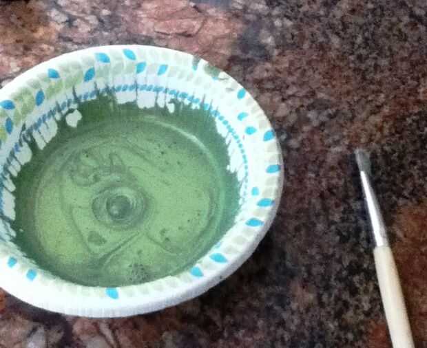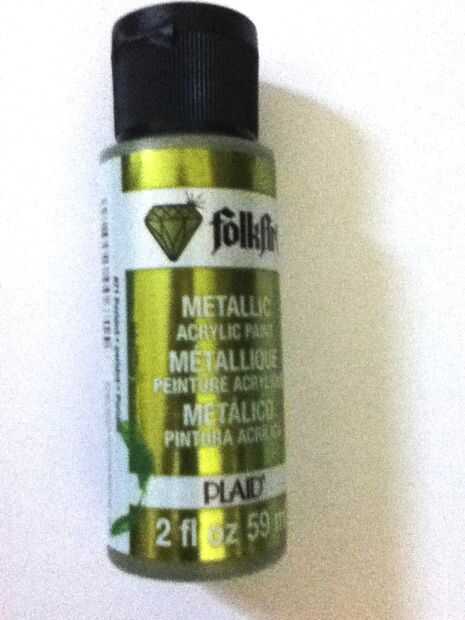 Materiales: Pintura acrílica metálica más ligera, agua, recipiente, pincel pequeño y una mano.