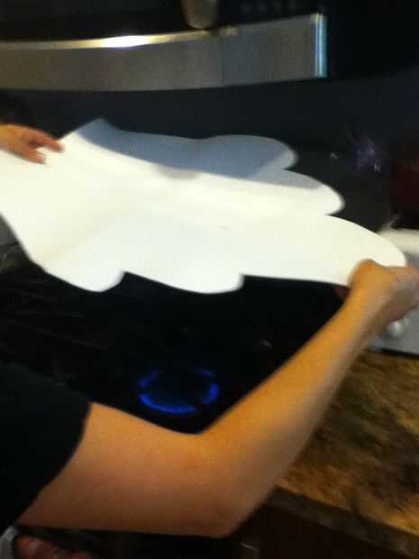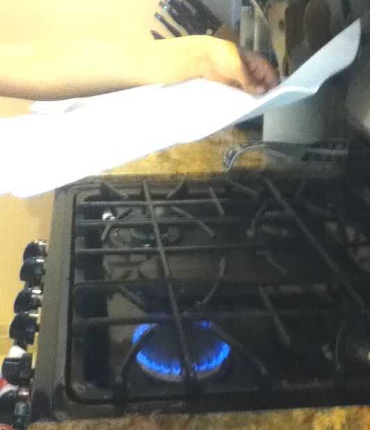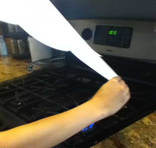 Los contornos de espuma probablemente no quedará planos sin el doblez o les plegado. Esto puede remediarse manteniendo la espuma sobre una fuente de calor y suavemente tirar recto. Mantenga la espuma arriba o ligeramente lejos de la fuente de calor, en este caso una flama de una estufa y la espuma comienza a sag y relajarse. Como lo hace, tirar de los bordes de la espuma para hacerlo más recto. Mientras sostiene la espuma en esta nueva forma, quitar el contorno de la espuma del alcance de la fuente de calor y sostenga hasta que se enfríe. Puede ocurrir un leve rizado en los bordes, sin embargo, el contorno de la espuma interior principal ahora es recto. Si la pieza no es lo suficientemente recta, volver esquema de espuma a fuente de calor y repita el estiramiento hasta que esté satisfecho con la forma por. Apague la fuente de calor cuando se hace.