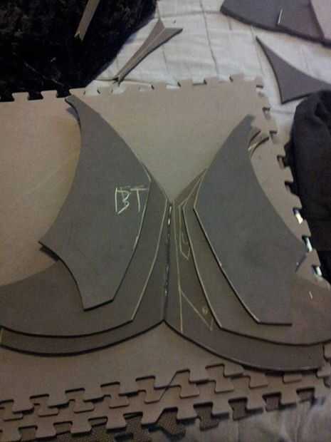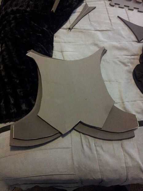 Tiempo para una armadura pesada que empecé gratis dando la forma que quería en un EVA. Tú siempre elaborar algo en el ordenador y luego imprimir hacia fuera si su más cómoda con él de esa manera. Después tuve algo me ha gustado luego corte un lado había volteado y entonces trazado al otro lado para obtener una pieza completa. Hice que 5 veces en diferentes tamaños para lograr la apariencia de la pesada armadura de capas. una vez que el frente se hizo remontar otra vez pero esta vez hice unos pequeños cambios para que se vea como la parte posterior de la armadura. Una vez que se hizo la parte de atrás empecé a los procesos de corte las áreas para el detalle esta vez aunque yo solo cortar todo. Entonces voltea y remontar esa parte en el otro lado para conseguir un look aún. Una vez que donde tanto recorte les volcó y pegan en su lugar con la textura hacia arriba para darle una mirada más detallada más ocupada. Tengo que decir que haciéndolo de esta manera es mucho más rápido y más fácil con los dedos.