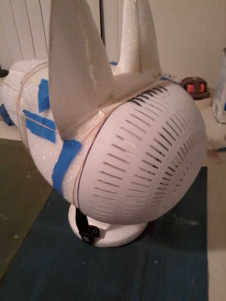 Usted tendrá que aplicar espuma un poco más a los lados de la cabeza a los lados del colador - esto es muy importante en mantener la continuidad en la transición de la cara en la parte posterior de la cabeza. Todavía se muestran, pero hará bastante bien.