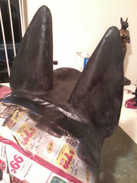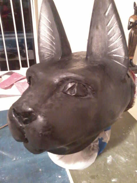 Enmascare una tira de 1/2" justo en frente de donde el colador en la parte posterior de la cabeza (ver foto #2). Ello, porque cuando usted cubre el colador, desea que su cola para tener un asimiento firme en la máscara en sí. Si pega directamente a la pintura, la pintura podría despegarse. Cubrir el colador en el periódico (para que no pierda la pintura).