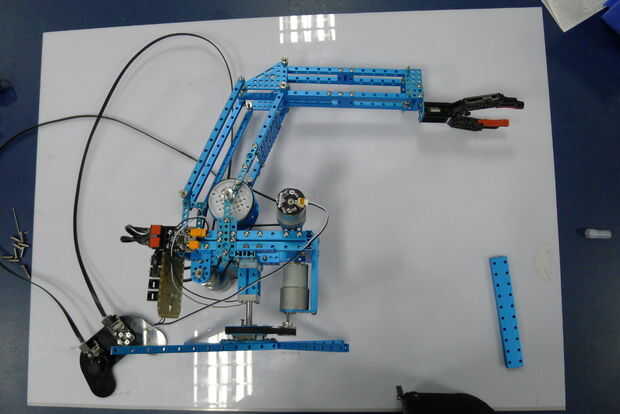 Después de construir el brazo y base, conectará con el cuerpo principal que contiene motores y controlador.