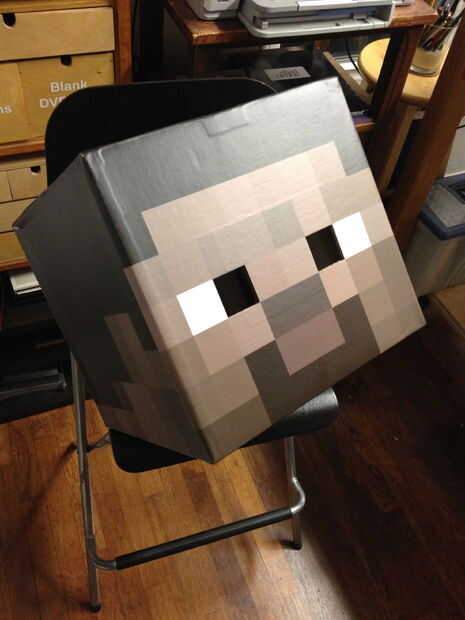 Al iniciar este paso tienes dos agujeros cuadrados ojo que necesitan ser removidas. Ver cuadro (1-3) el proceso es exactamente igual que el último paso excepto no agrandando los orificios de todos y sólo está cortando a través de una capa de cartón. Por lo que he visto hay algunas muy bien y la personalización original que hago en este paso que no ofrezcan o en cualquier otro Steve cabeza en cualquier lugar. Sí acaba de hacer esta afirmación audaz y Soy confidente en él:) Por lo tanto ir adelante eliminar los agujeros del ojo. Cuando termines tendrás lo que ves en la imagen (4) bueno, pero no impresionante... Una cabeza de Steve cartón con no un atisbo de vida en sus ojos... Esto me molestó mucho y no es la apariencia de Steve. Así que comencé a experimentar y buscar probar varias ideas sobre cómo agregar el color azul a los ojos de Steve sin interferir con la visión y seguridad. Me colocó en vinilo ventana perforada blanca como se ve en la imagen (5) luego había probado colores marcador azul indeleble en él hasta que estaba satisfecho. Este material es el mismo que el otro vinilo que utilizado con un papel adhesivo de la parte posterior y el soporte. Funciona por ser un modelo 50/50 de agujeros y discos de vinilo que no visión y es utilizado en autobuses y otras estadísticas de aplicación desea ver a través de gráficas. De todas formas en foto (6) puede ver el marcador color de vinilo. Yo entonces limita lo con el lado adhesivo de la cinta de enmascarar la misma dirección que el azul como parece en el cuadro (7). Luego coloca los dos colores de ojo azul dentro de la cabeza de Steve sobre los agujeros del ojo como se ve en las imágenes (8 y 9) y frota hacia abajo de la cinta para mantener en su lugar. TADA!!! Steve ahora tiene vida y todavía se puede ver hacia fuera totalmente claro.
