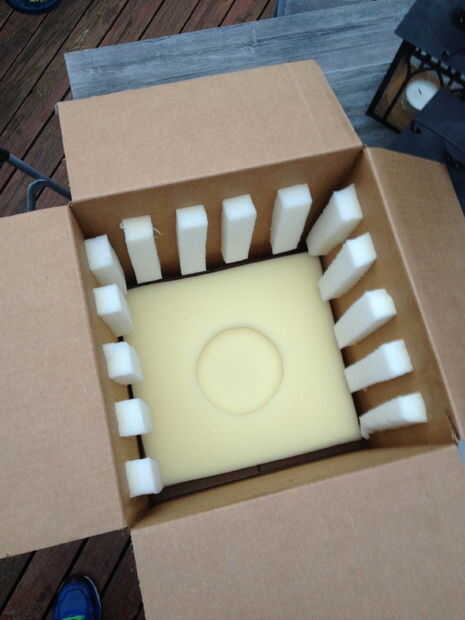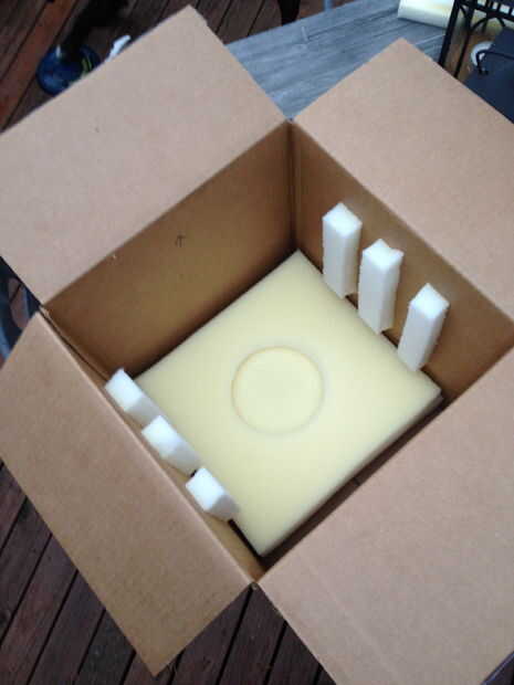 En este paso que vamos a tomar algunos de los restantes acolchado de la espuma y añadir las tiras en el interior de la caja.