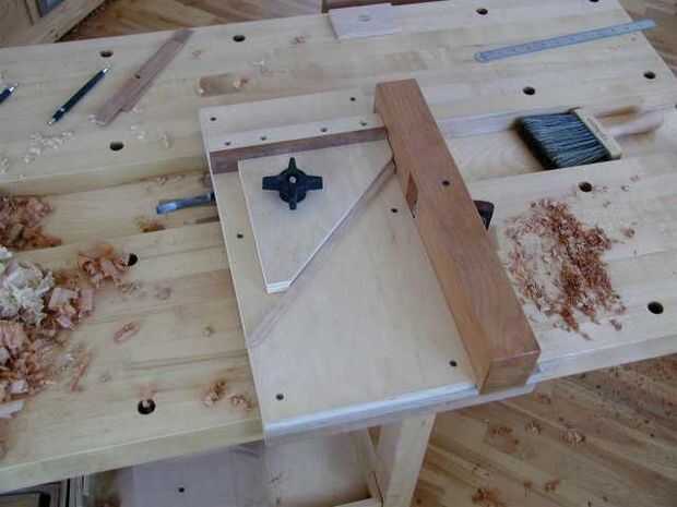 Tiro los ingletes para el interior del panel componentes del marco. Esto se realiza después de que los componentes se dimensionan al interior tapa. Tirar de los extremos del cajón y bandeja de componentes garantiza una perfecta unión de 45 grados o de esquina para el interior de la tapa los componentes. La Junta toma puede utilizarse para disparar 45 o 90 grados extremos de componentes. Ingletes perfectos son críticos como lagunas en las articulaciones de la calidad de la caja de la joyería.