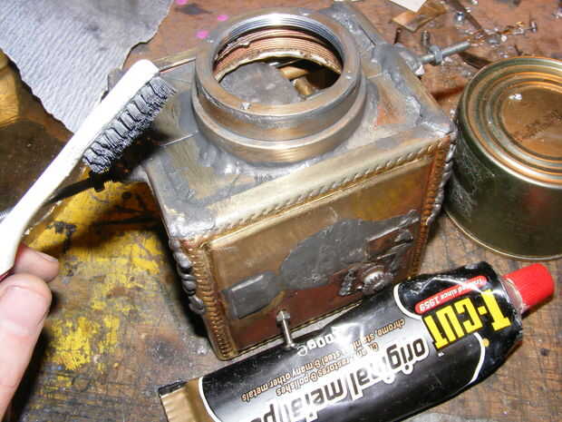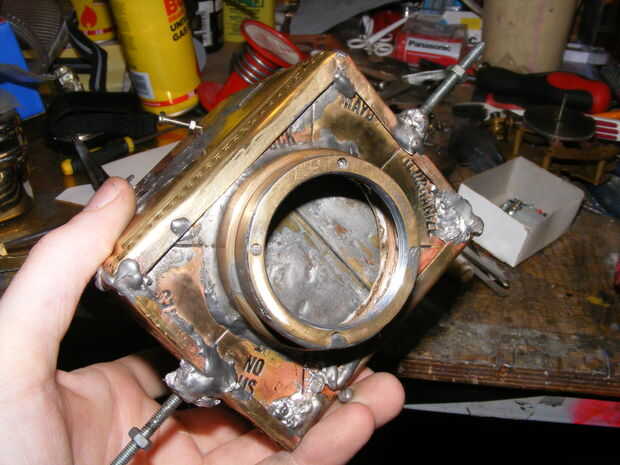 Construcción de cámara de latón shiney para utilizar lentes m42 estándar en películas de formato medio pijo! (6 / 8 paso)