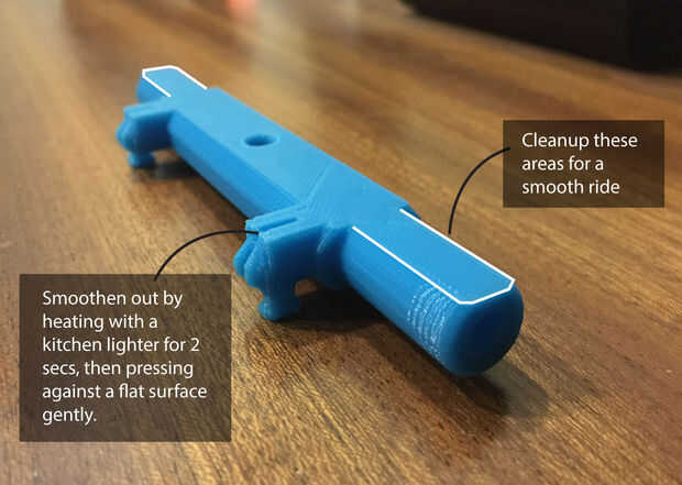 Cuando las impresiones están hechas, su tiempo para comprobar las piezas de bordes afilados y lisa hacia fuera. Seguramente habrá algunos para la superficie que fue tocar la cama. Ahora, puede limpiar esto usando una navaja/archivo/papel de lija - también conocido como el camino duro - o una cocina de gas más ligero para calentar solo el borde durante 1-2 segundos y luego sólo hay que poner el pulgar sobre la superficie ligeramente. Esto puede tomar varios intentos para que bien pero este es el más rápido y la manera más limpia de hacerlo. Un pequeño problema con esta técnica es que puede oscurecer la zona dependiendo de la llama. Tenga cuidado aquí no calentar la parte demasiado o podría quemar el dedo.