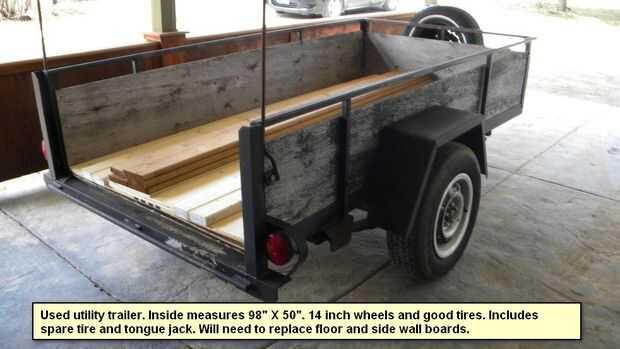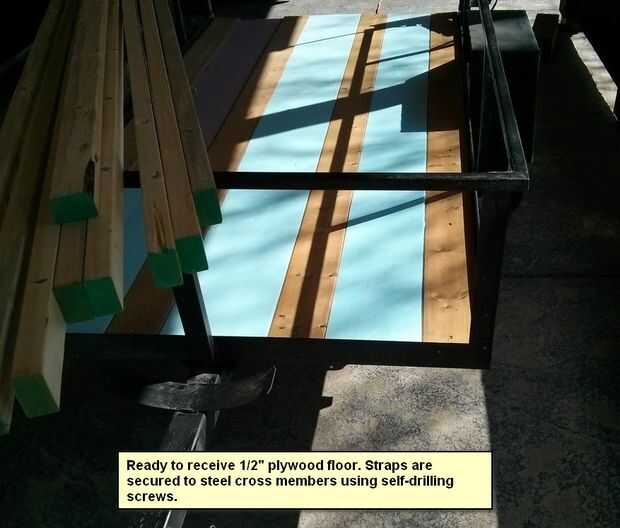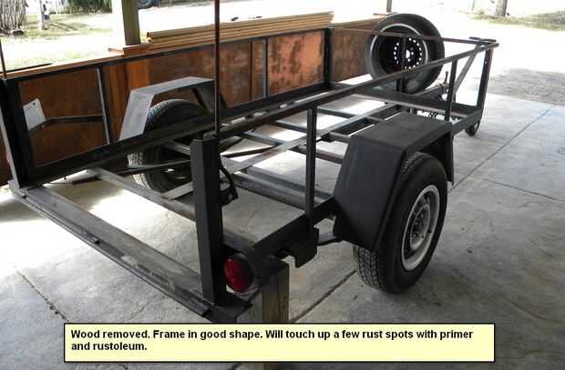Empecé con la compra de un remolque de utilidad usados, de alta resistencia. El piso de madera y paredes laterales necesitan para cambiarse pero lo contrario era sólido y el precio adecuado para mi proyecto. Si el marco de la necesaria modificación o fortalecimiento, este sería el momento para hacerlo.