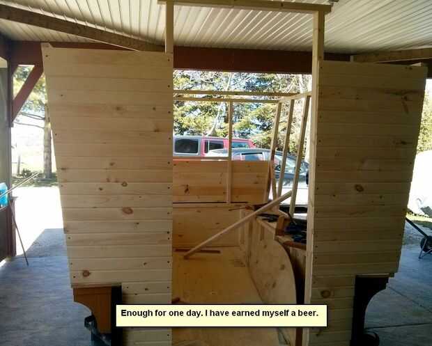 Esto fue bastante tiempo consumiendo al principio, seguro que cada curso fue a la Junta en el lado opuesto de la puerta. No obstante bastante satisfactorio para ver las paredes y para el carro empezar a tomar forma.
