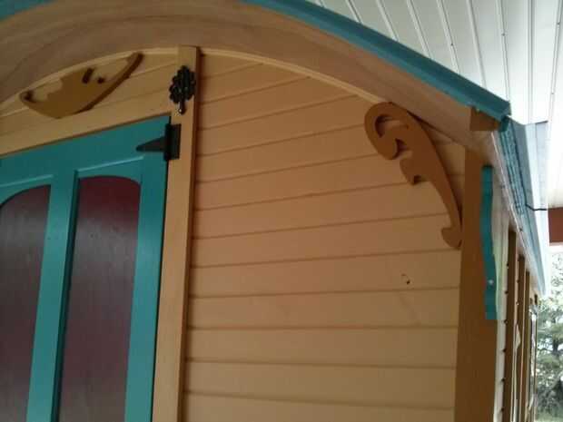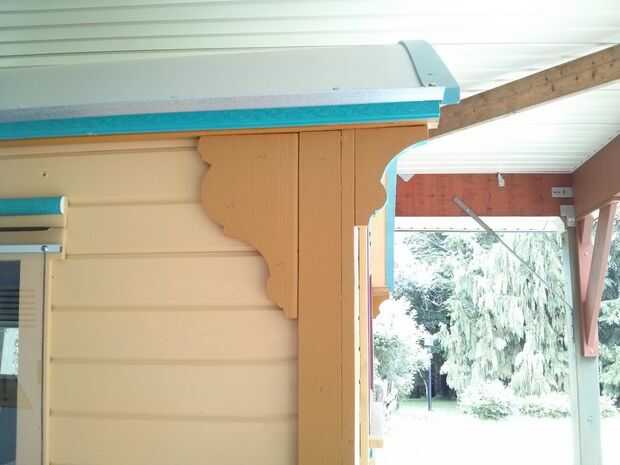 Un trabajo en progreso. Los extremos son sellado de tiempo. Decidió añadir un par de soportes decorativos en el extremo de la puerta, pared entre el techo y la pared exterior. Son soportes en la parte superior del marco de la puerta.