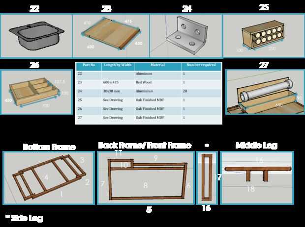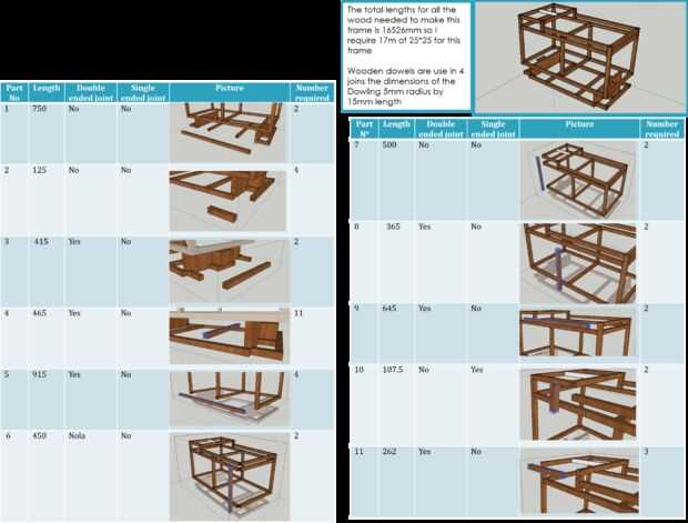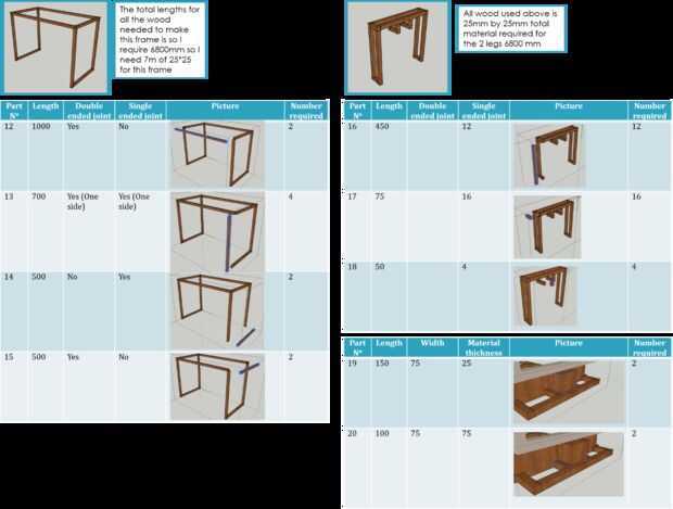 Aquí tenemos una lista de los componentes que conforman el marco. El revestimiento no está incluido en estas listas.