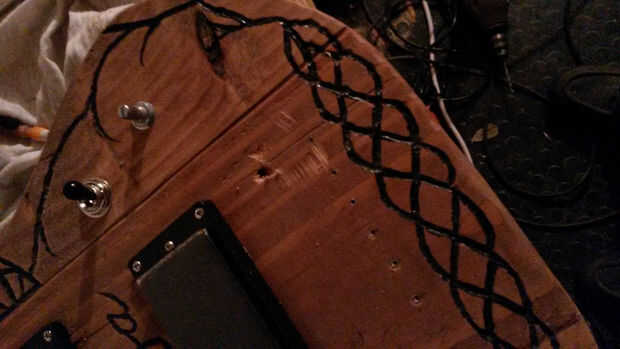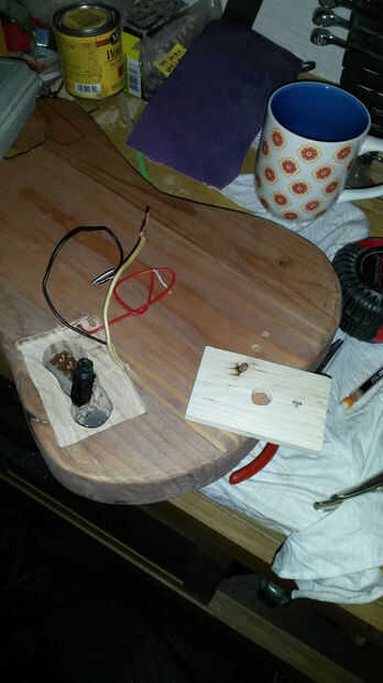 -Ejecutar el cable restante a través del agujero en la guitarra en el compartimiento de la electrónica.