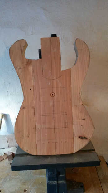 -Una vez que tenga un dibujo terminado que puede cortar el cuerpo de la guitarra. Utilicé una sierra de cinta pero también se podría utilizar una sierra de calar o una sierra de contornear.