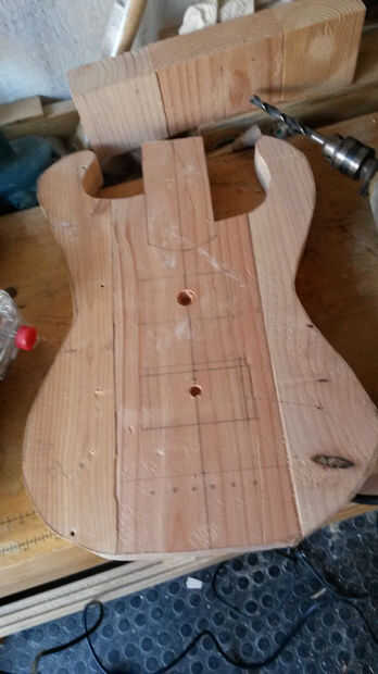 -Esbozar la forma de una guitarra en un bloque de madera. Usted debe tomar tiempo para dibujar detallado posicionamiento de componentes a instalar. Dibujar una línea central en el tablero y utilizarlo como punto de orientación. Dibujo es mucho más fácil hacerlo desde el principio como se trabaja con un objeto cuadrado a diferencia, pues, una forma de guitarra.