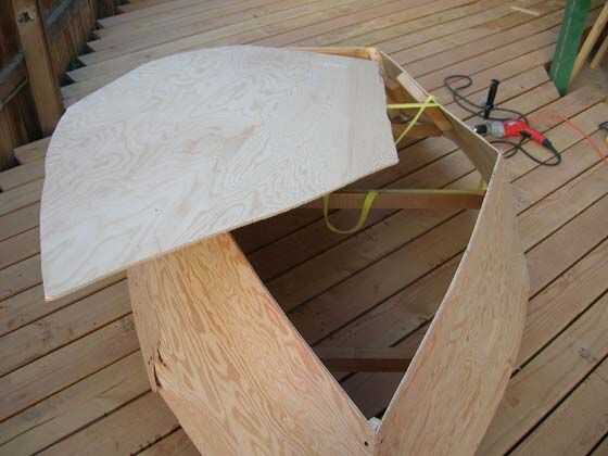 Para este barco que espaciado los tornillos bastante lejos aparte por lo que pude de fibra de vidrio entre las cabezas de los tornillos, dejan eso de fibra de vidrio seco, luego saque los tornillos y finalmente hacer un segundo pase a la fibra de vidrio sobre los lugares que habían sido los tornillos. (siguiente paso)