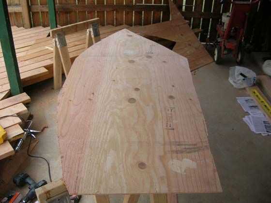 Dé vuelta el barco y comenzar a usar tornillos de 1" para atornillar la parte inferior para la parte inferior de los lados del barco. Comencé en la proa y había trabajado mi camino de regreso.