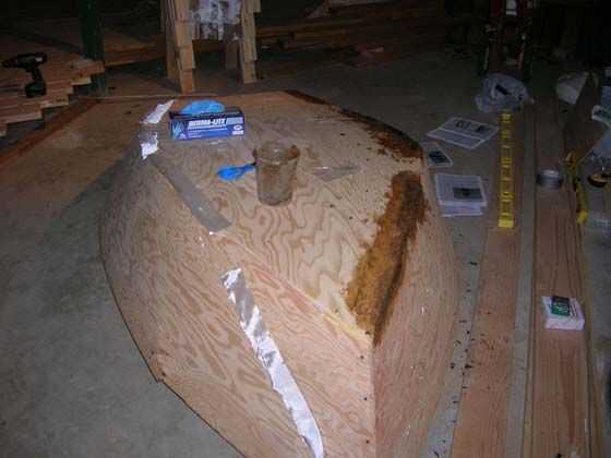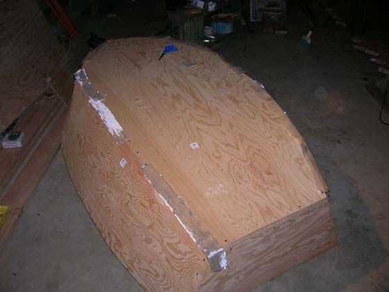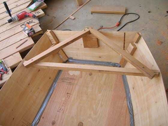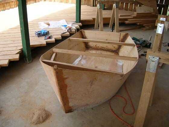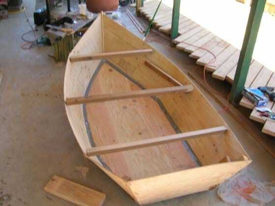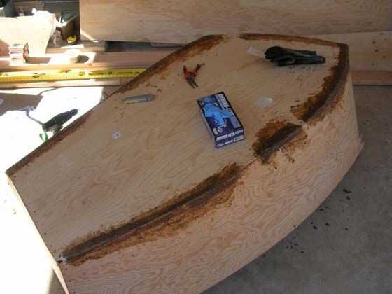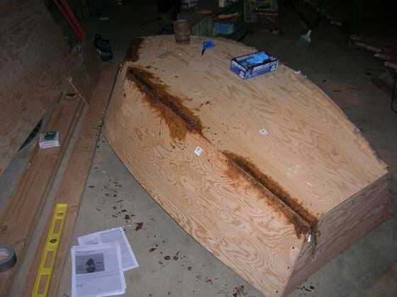 Pegote de resina en todas las costuras dentro del barco y endecha de fibra de vidrio tiras en que y cubrir con resina y lisa.