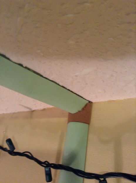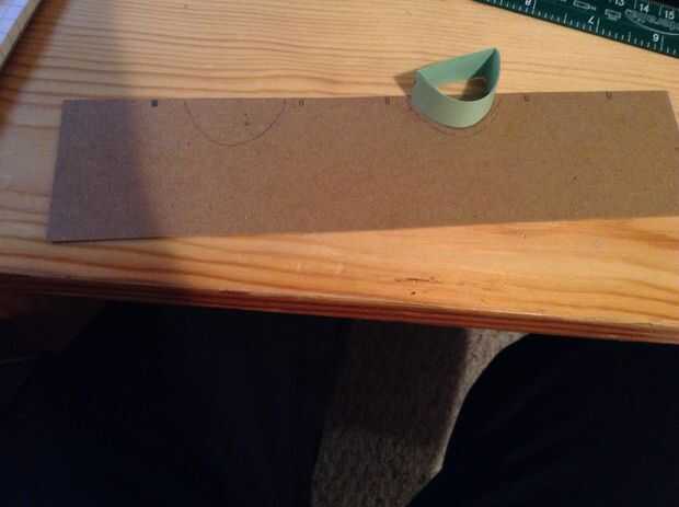 Para un empalme de la esquina, es básicamente la misma idea, pero tenemos que cortar una sección del tubo que está sentado contra. Hice un pequeño tubo para trazar lo que necesitaba para cortar en las secciones de doblado de la tira (las piezas de 5 cm). Ver las fotos.