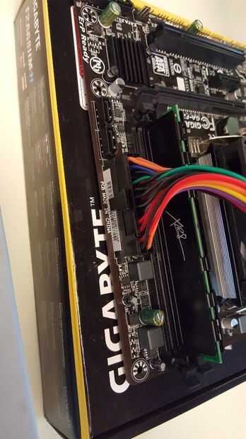 A continuación sacar la fuente de alimentación. Enganche en los 24 pines en la placa base. Luego enganche el cordón de alimentación a la fuente de alimentación.