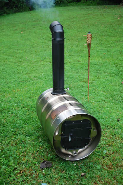 Tengo unos tambores de acero inoxidable de mentira alrededor de la propiedad. Decidí yo tomar el más bonito y hacer un horno fuera de él.