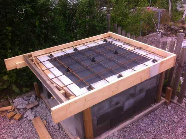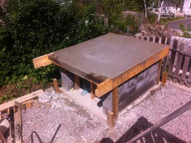 Después de la pared de la Fundación concreta había construí un marco para contener la base horno de concreto. He utilizado pino por debajo y a los lados, con el cemento que cubre la base. Otra vez me puso acero rebar y vierte una capa de hormigón 10cm de espesor. Otra vez dejo el hormigón curado bajo plástico.