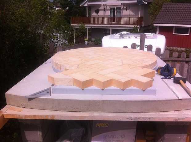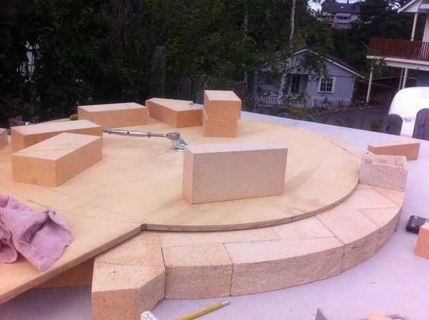 He comprado 250 ladrillos refractarios para el hogar y la cúpula. Yo solía una amoladora con un disco de diamante corte los firebricks donde sea necesario. Empapó los firebricks en agua antes de cortar para reducir el polvo y reducir el calor generado.