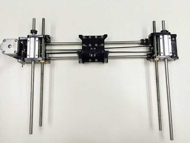 Paso 4. Montar la pieza terminada en la impresora. Ajustar los dos extremos del eje X para asegurarse de que las barras lisas y la varilla roscada del eje Z es vertical, y los dos extremos del eje X es horizontal, que es muy importante, o dificultarán el movimiento del eje Z.