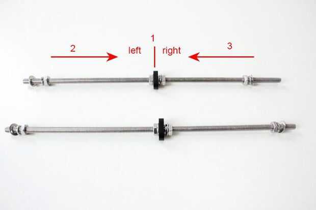 Enrosque las tuercas y arandelas en las dos varillas roscadas M10 por separado. La orden debe ser:
