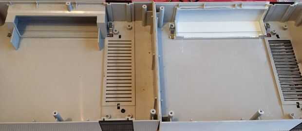 Ahora puede quitar la cubierta superior de la ranura de la placa protectora y el cartucho. Aquí está mi terminado uno a la izquierda y una tapa estándar de NES a la derecha.