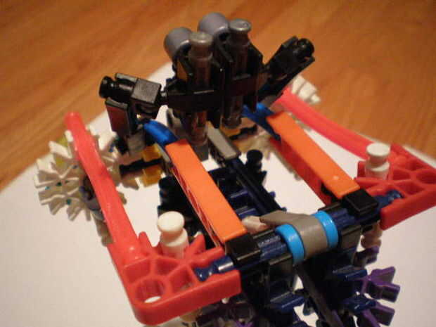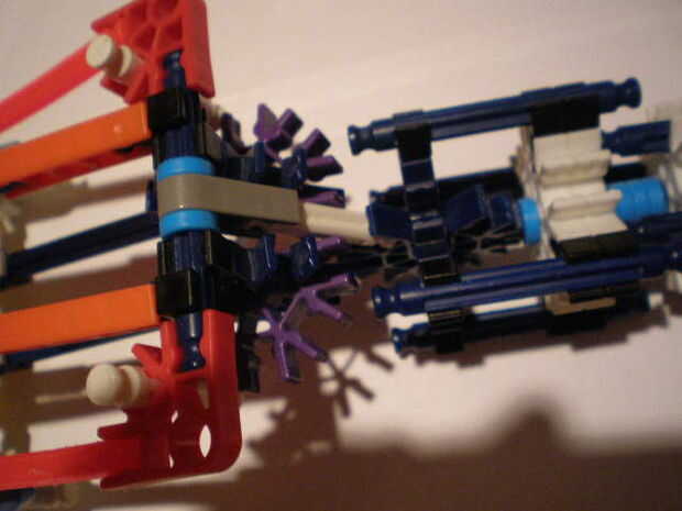 tomar de 1-2 que la barra blanca que no hacer nada desde el primer paso y fije el conector azul y no importa que las piernas son ahora porque puede rotarlos para corregir que forma de manera que se enfrentan como el conector azul y la barra blanca están unidas correctamente