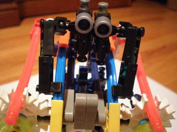 5-7 tome las 2 mitades de la cara de construir en el paso 2 y conectar a las barras flexible azul hacia el conector amarillo como en la foto.