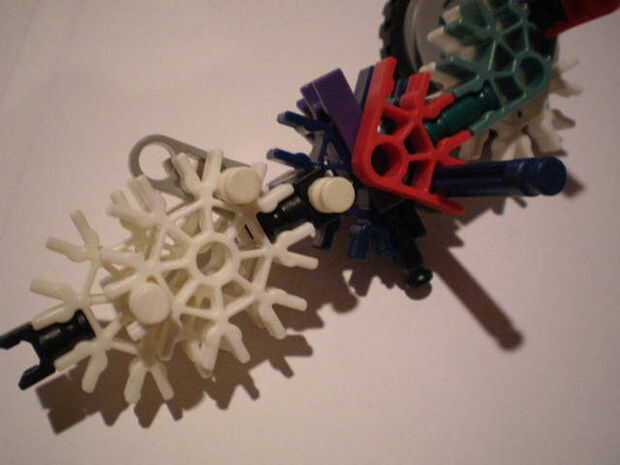 En la barra verde que pones en el conector azul en el hombro en cada brazo es donde conectas el empalme conector de bola hembra a de fotos 1-2. para que se vea como imagen 20
