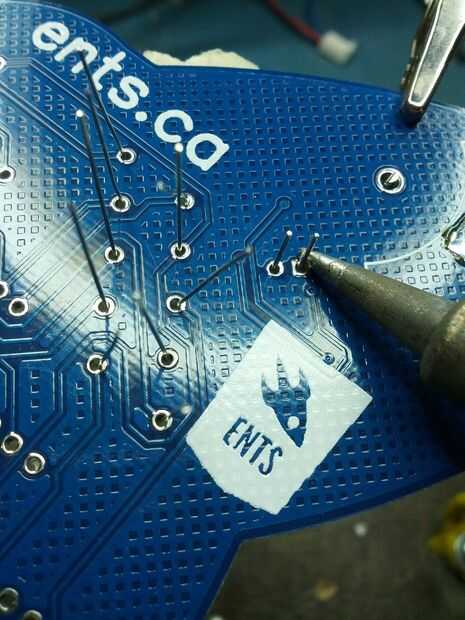 Limpie la punta fuera con una esponja húmeda o lana de bronce, que debe estar cerca de la estación de soldadura. Ahora moje la punta con estaño como lo hizo antes de soldar el pad de la batería. Sujete la plancha por lo que toca la almohadilla y el componente de plomo y contar dos segundos. Sosteniendo la plancha en su lugar, añadir un poco de soldadura conocer donde el componente y el pad en el tablero. No quiero una gota grande de estaño, pero una pequeña forma cónica. Si tienes demasiado en un intento conjunto, limpieza de la punta y algunas de la soldadura de fricción a la parte superior de la cabeza.