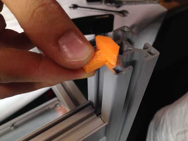 Tomar las dos partes llamadas L_2020-3030. Deslícelos cuidadosamente hacia abajo en ambos los perfiles verticales.