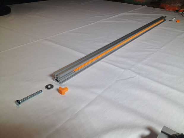 Necesitarás 20 x 20 x barra de 800 mm con el estante del codificador en el interior, dos de las piezas de 'L_2020-3030', dos arandelas amplia M6 y dos pernos M6x50.
