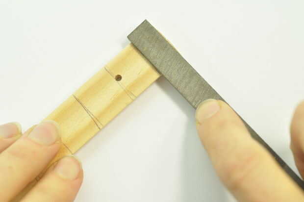 • Dos mitad - redondeado listones de madera, un agujero de cada líneas cada 15 mm y 60 mm