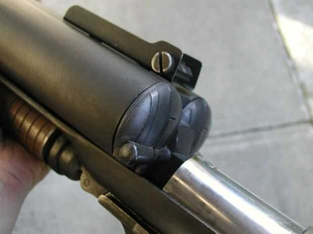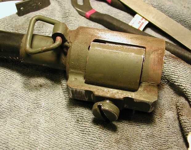 La culata alemán terminó pintura gruesa de óxido y decidí parcialmente la tira antes de volver a pintar. También quitó algunas de las capas de grasa de los muebles en la empuñadura y lo pintó con acrílicos para que coincida con la agradable nueva madera de Winchester escopeta guardamano. Limpiar cuidadosamente las piezas de acero inoxidable y pulir hasta el más grande uno con pulido compuesto y una rueda que pulimenta de Dremel.