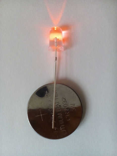 Así que nuestro primer paso es deslizar la batería entre el LED lidera el camino correcto, para que el LED se enciende.