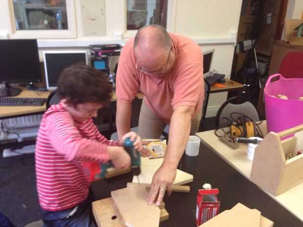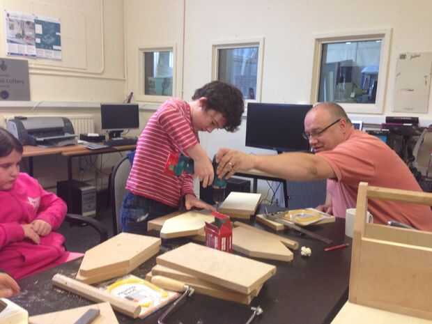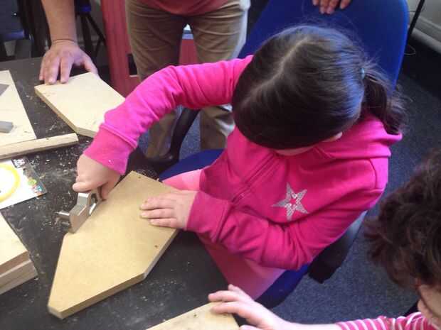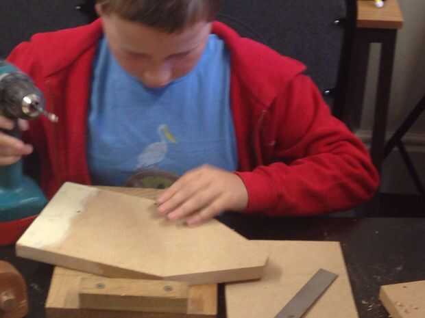 En primer lugar, hemos perforado los agujeros para los tornillos. Se llaman agujeros, para que los tornillos en el lugar correcto y más fácilmente. Tuvimos que medir por lo que irían en el centro del MDF donde buscar más aseada y sujetar más firmemente. Utilizamos un taladro eléctrico que fue divertido pero de miedo.