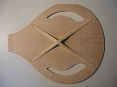 Las llaves fueron primero cortadas de un pedazo más grande de pinotea vendido para ser utilizado en guitarras. Me recortados las dos llaves en el patrón de x luego había pegado en la parte superior con pegamento para madera. Usé un tablero plano para sujetar la parte superior y llaves planas mientras pegan.